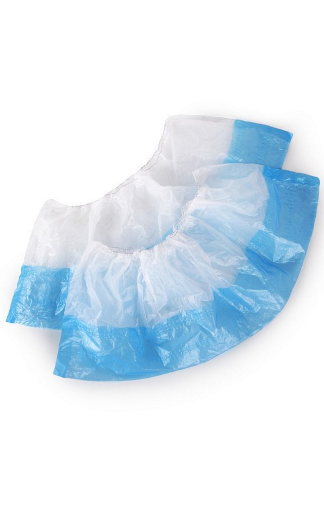 Бахилы одноразовые нестерильные полиэтиленовые, голубого цвета. Использование бахил предназначено для уменьшения риска распространения инфекций, а также количество бактерий на полах медицинских учреждений.